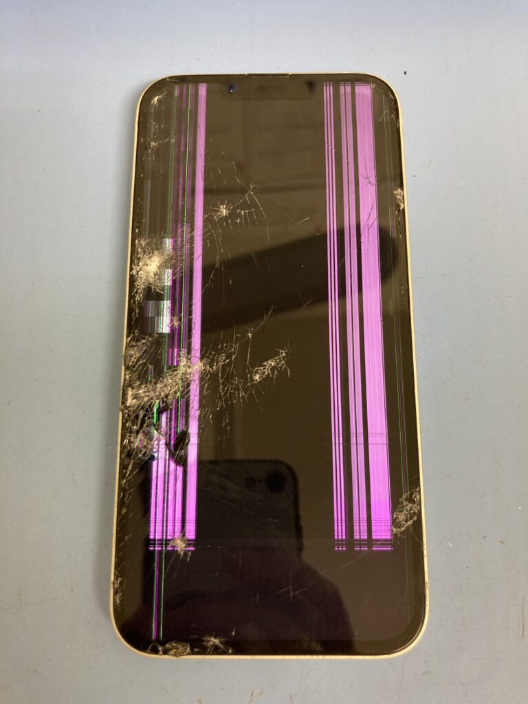 激しいガラス割れと表示不良を起こしたiPhone16e